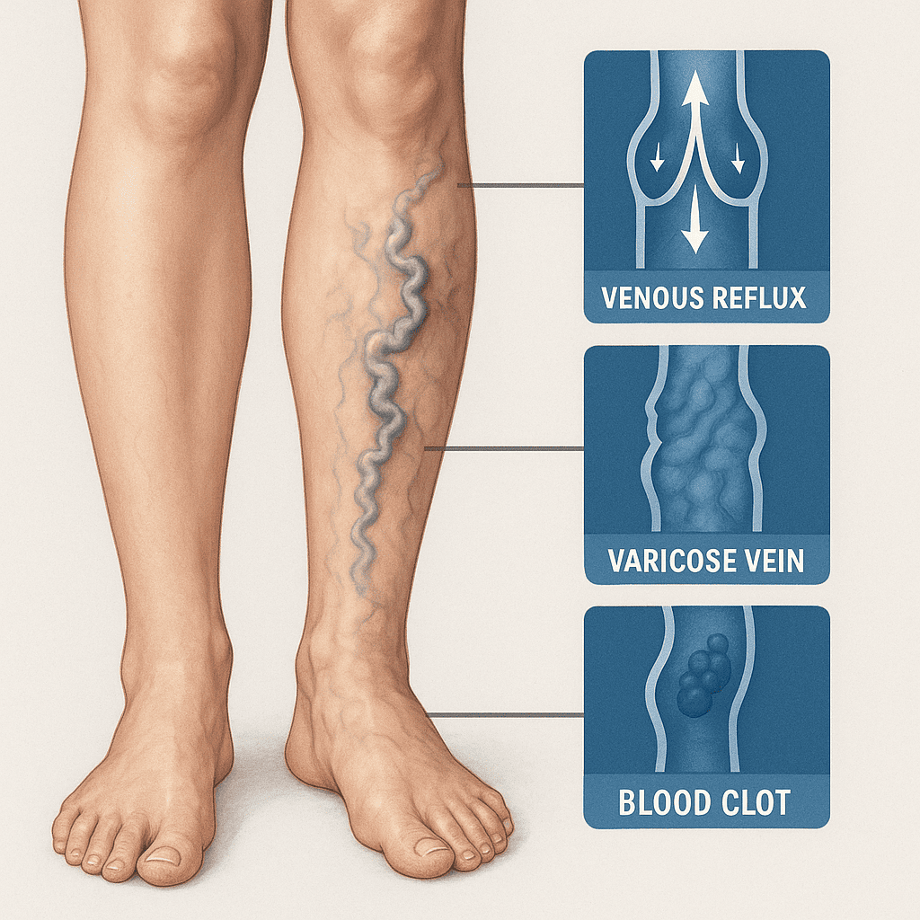 Клиническая картина варикозной болезни варьирует от косметических дефектов до тяжёлых трофических нарушений и осложнений, требующих специализированной помощи. Современная диагностика основана на клиническом анализе и ультразвуковом дуплексном сканировании вен. Лечение включает комплекс консервативных мероприятий и широкий спектр хирургических и малоинвазивных технологий, позволяющих индивидуализировать подход к каждому пациенту.